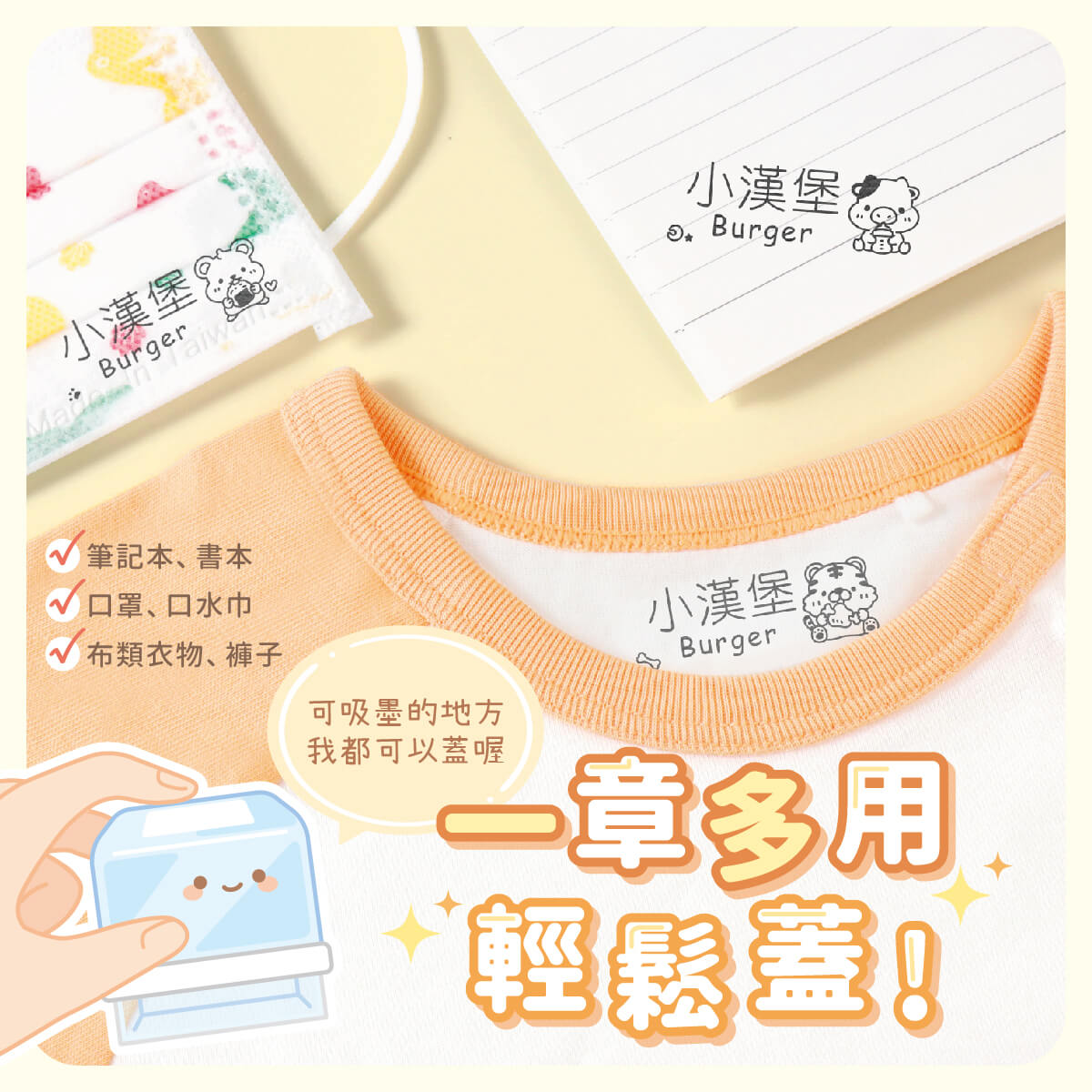 作伴衣物印章無毒抗菌、防水又耐洗,還擁有可愛彩色外殼