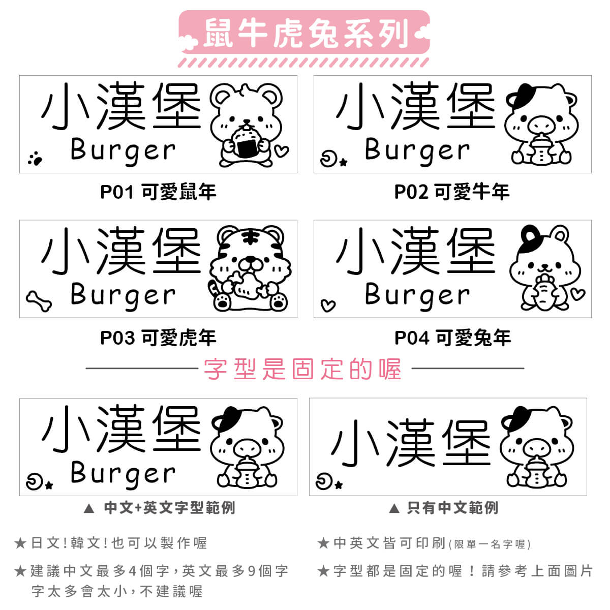 ▶ 字型都是固定的喔,如果想要中規中矩請備註要標楷體喔