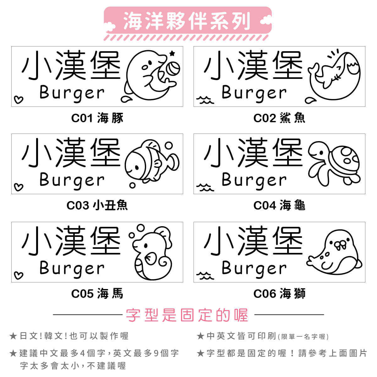 ▶ 字型都是固定的喔,如果想要中規中矩請備註要標楷體喔