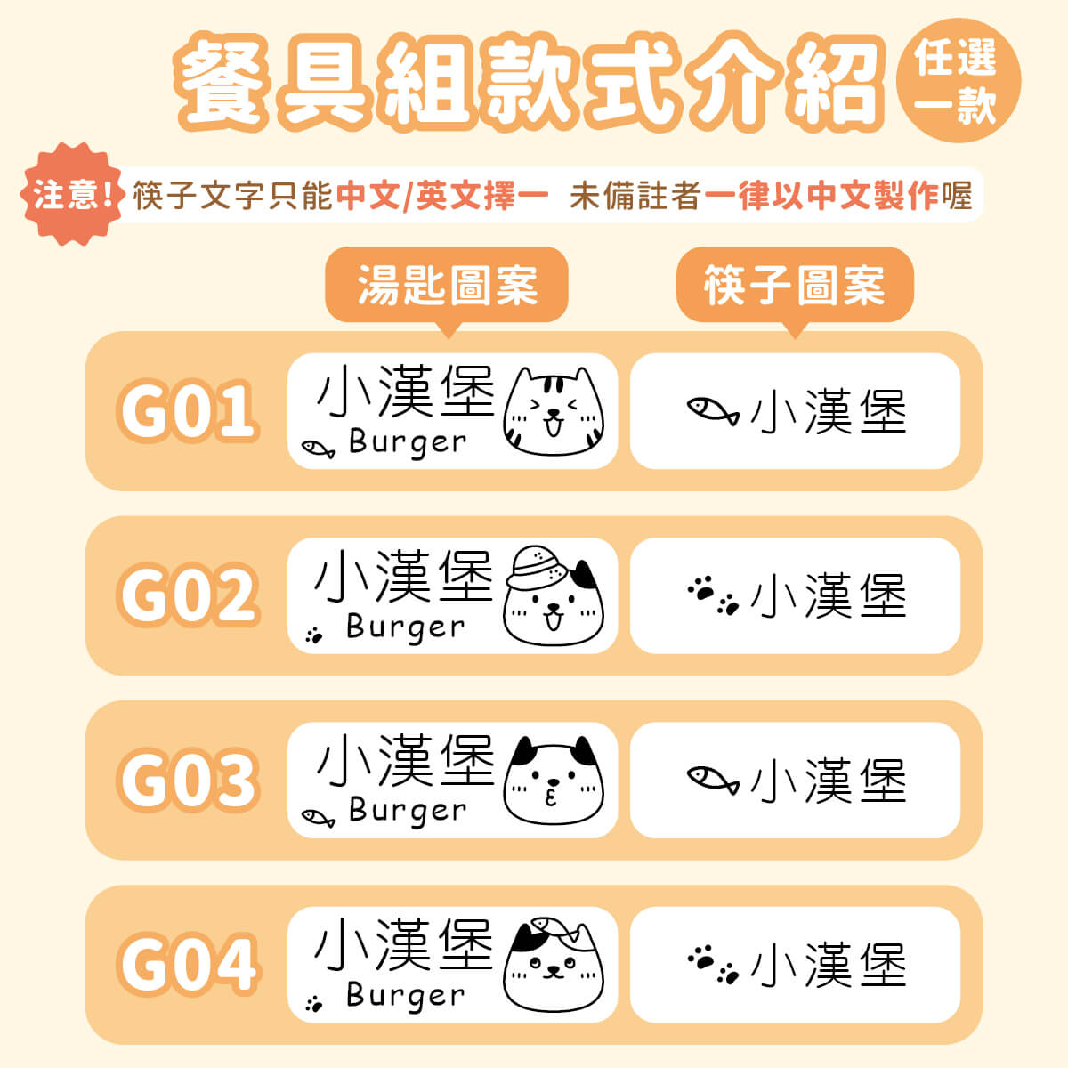 ※餐具組的湯匙可中英文一起,筷子中英文二擇一