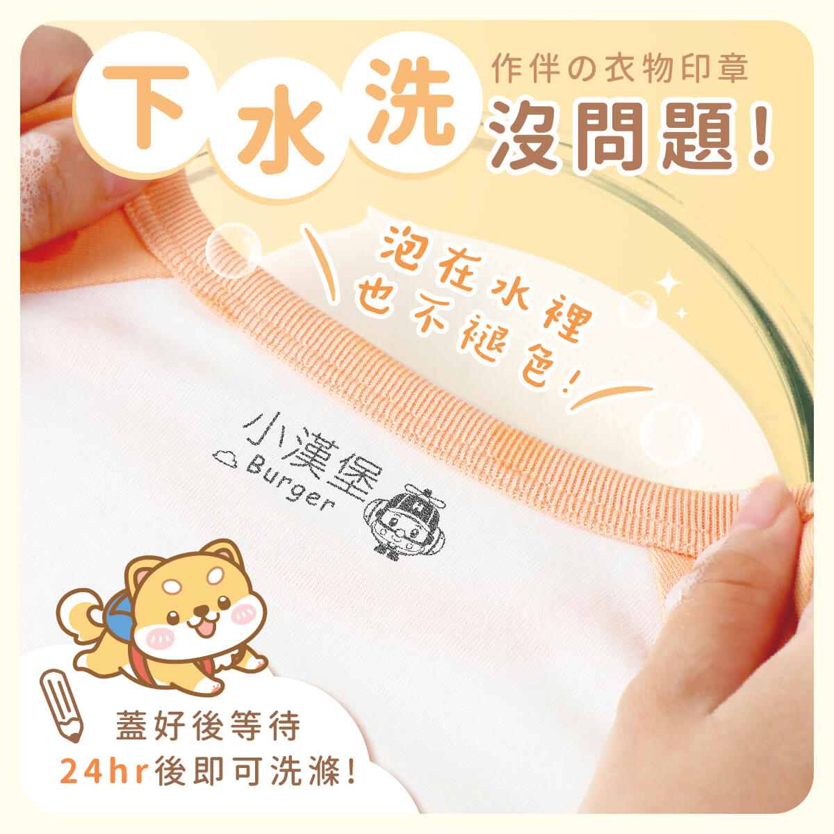 作伴衣物印章無毒抗菌、防水又耐洗,還擁有可愛彩色外殼