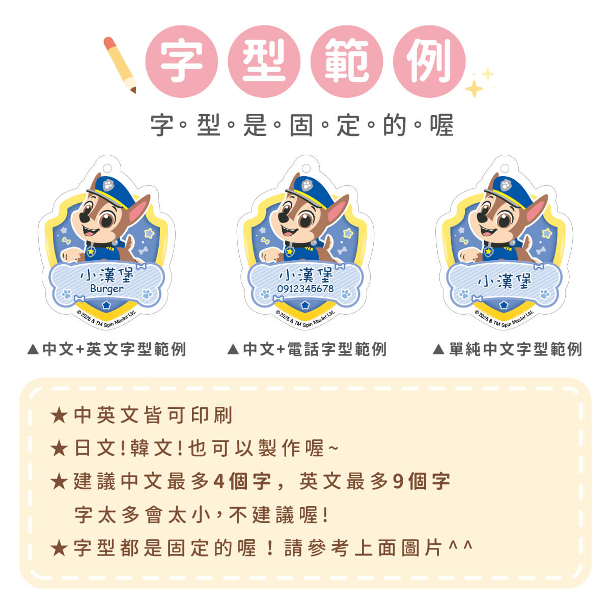 ▶ 字型都是固定的喔,如果想要中規中矩請備註要標楷體喔