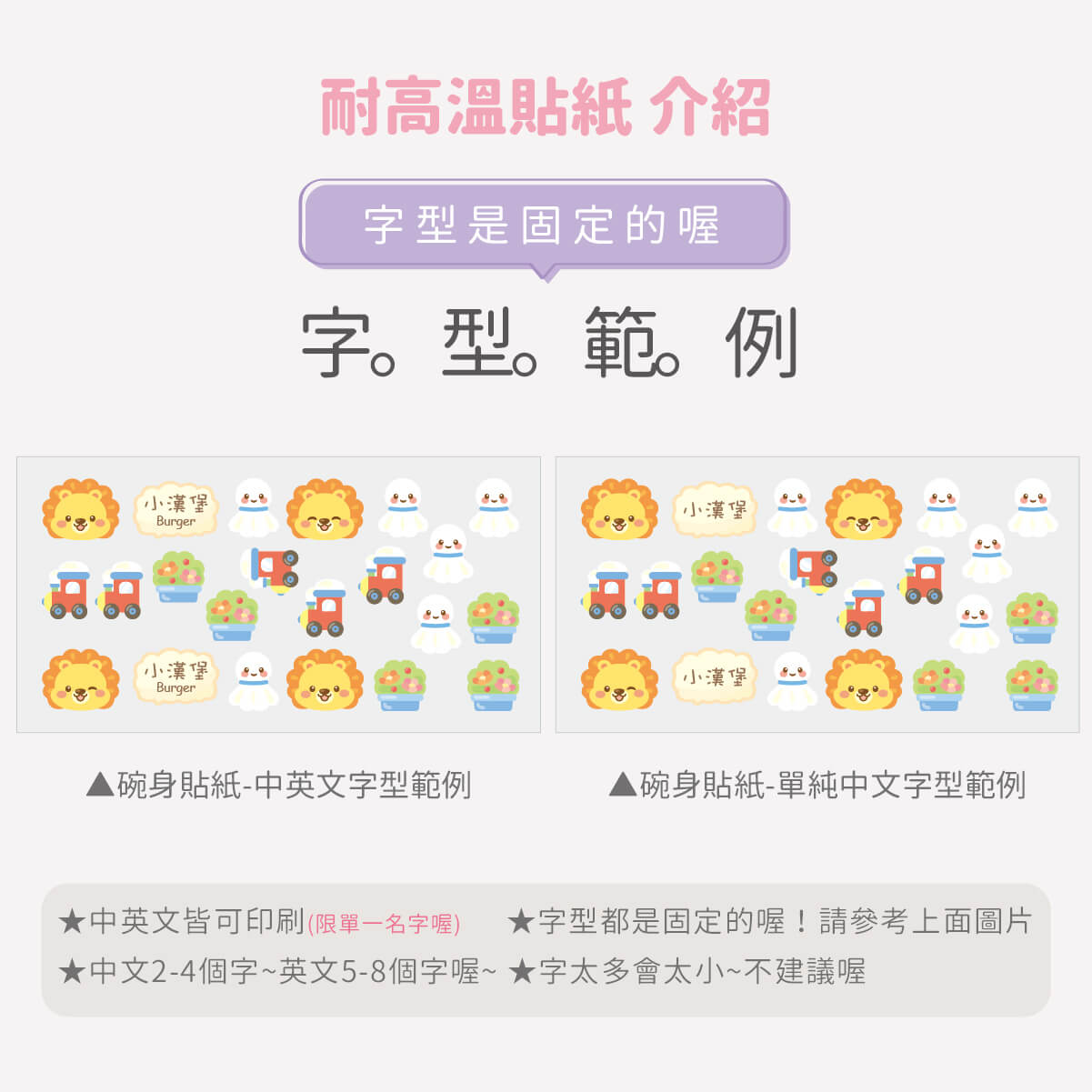 ▶ 三色碗專用耐高溫貼紙(一個碗搭配一張貼紙)