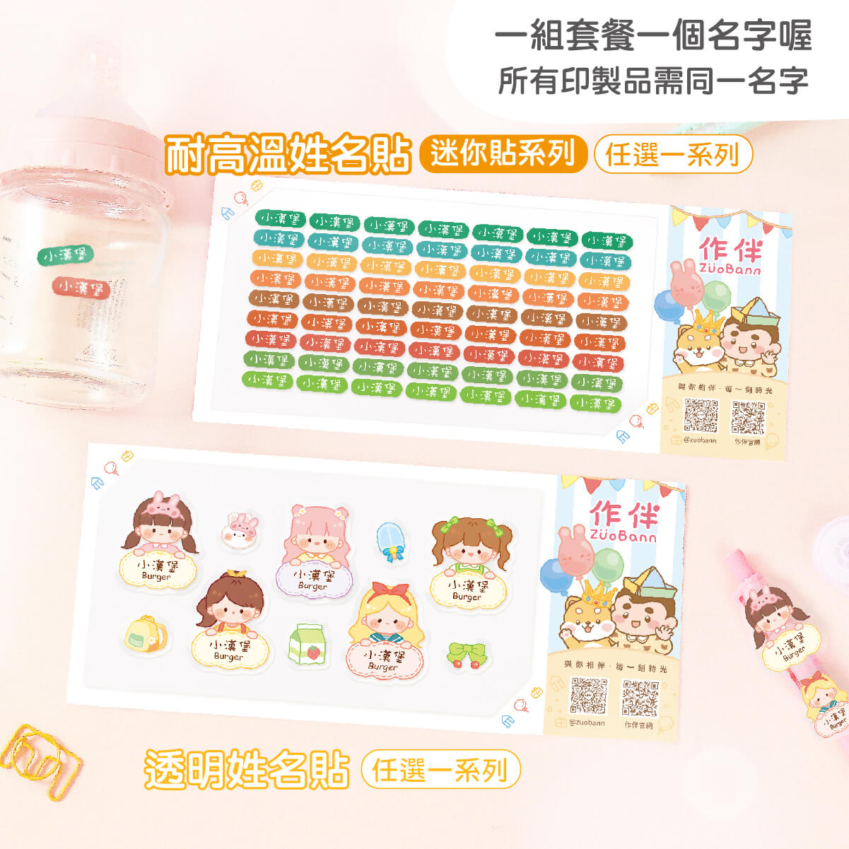 ▶ 透明姓名貼可中英文一起,單純中文、英文也可以