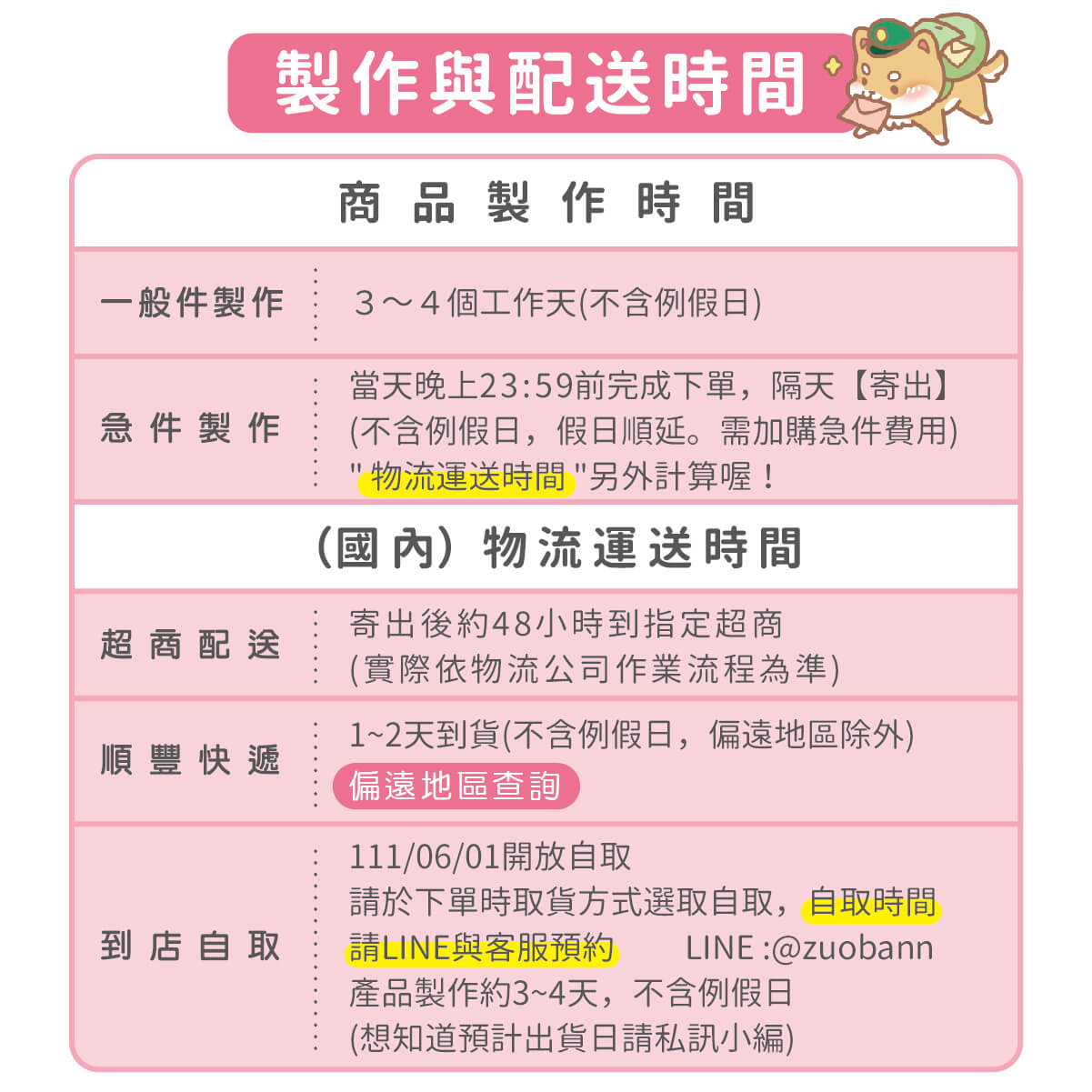 ▶ 製作天數約3-4個工作天,提早做好會提早寄出