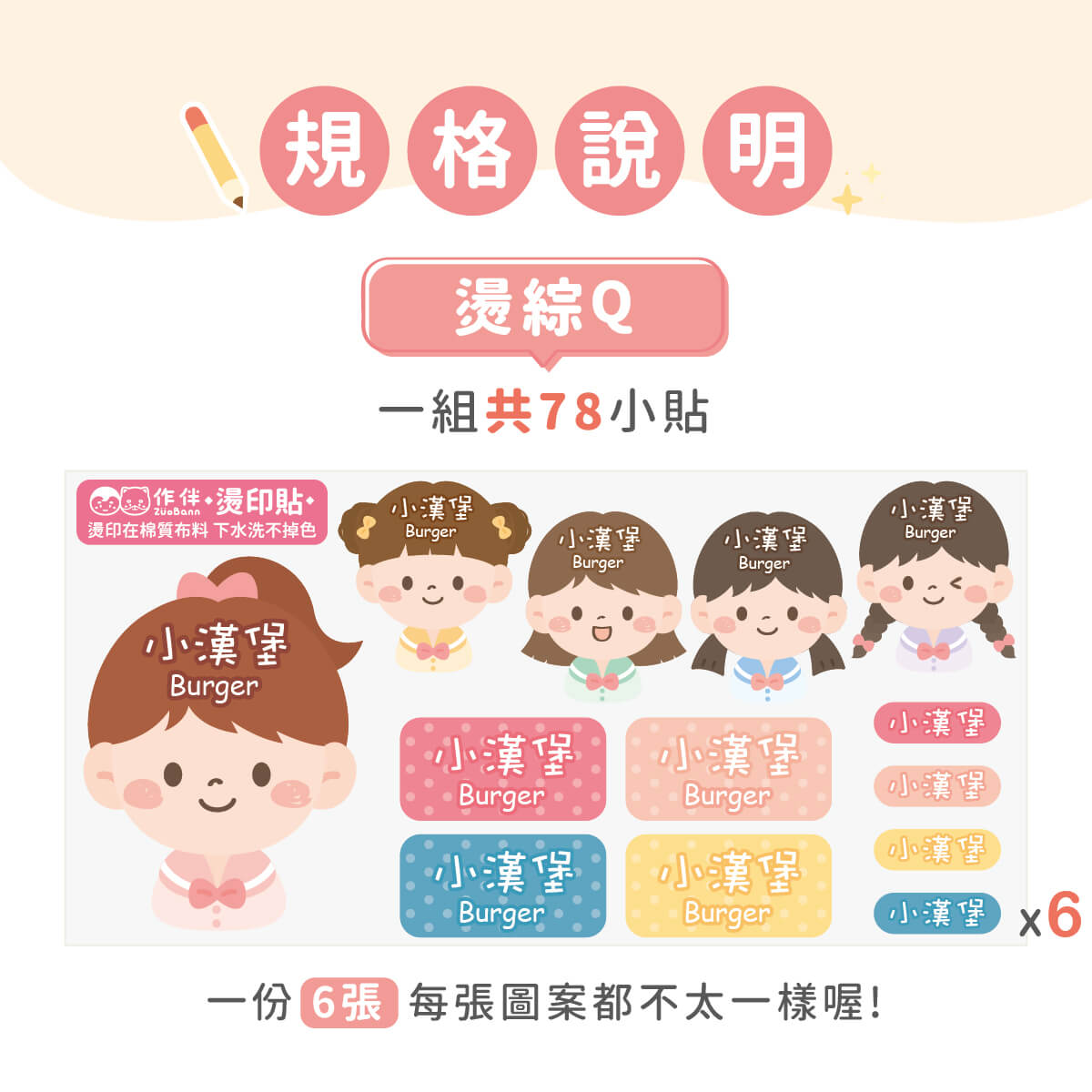 一組6張,每張皆含不同尺寸與圖案,共78入