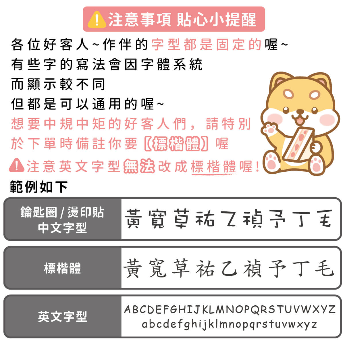 ▶ 字型都是固定的喔,如果想要中規中矩請備註要標楷體喔