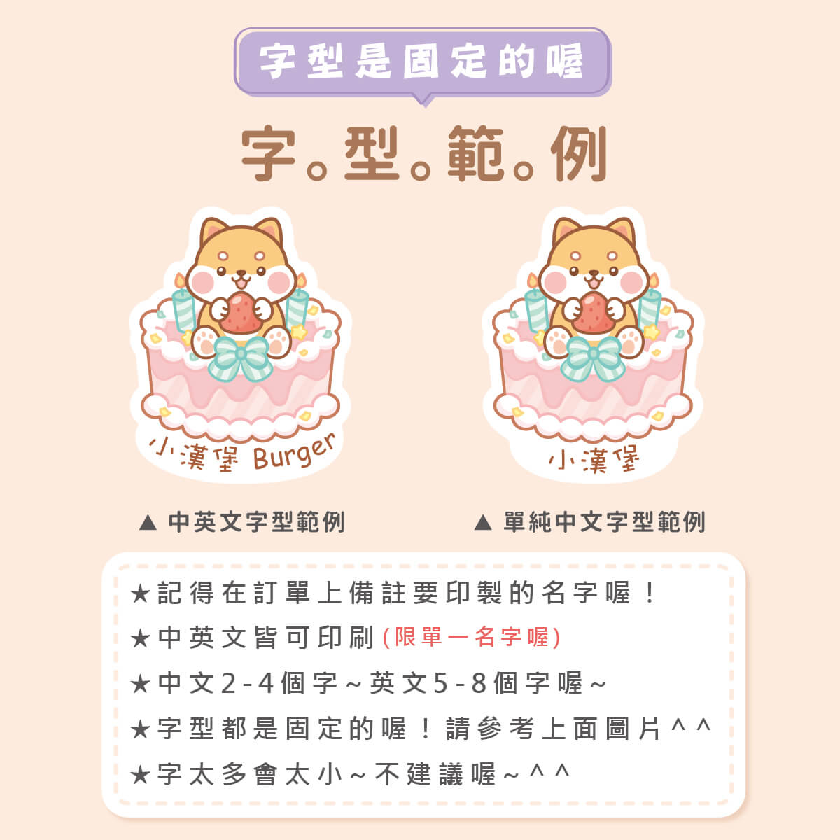 1. 姓名貼會依照訂單填寫內容製作,姓名部份不再另外做確認,請務必確認填寫內容是否正確