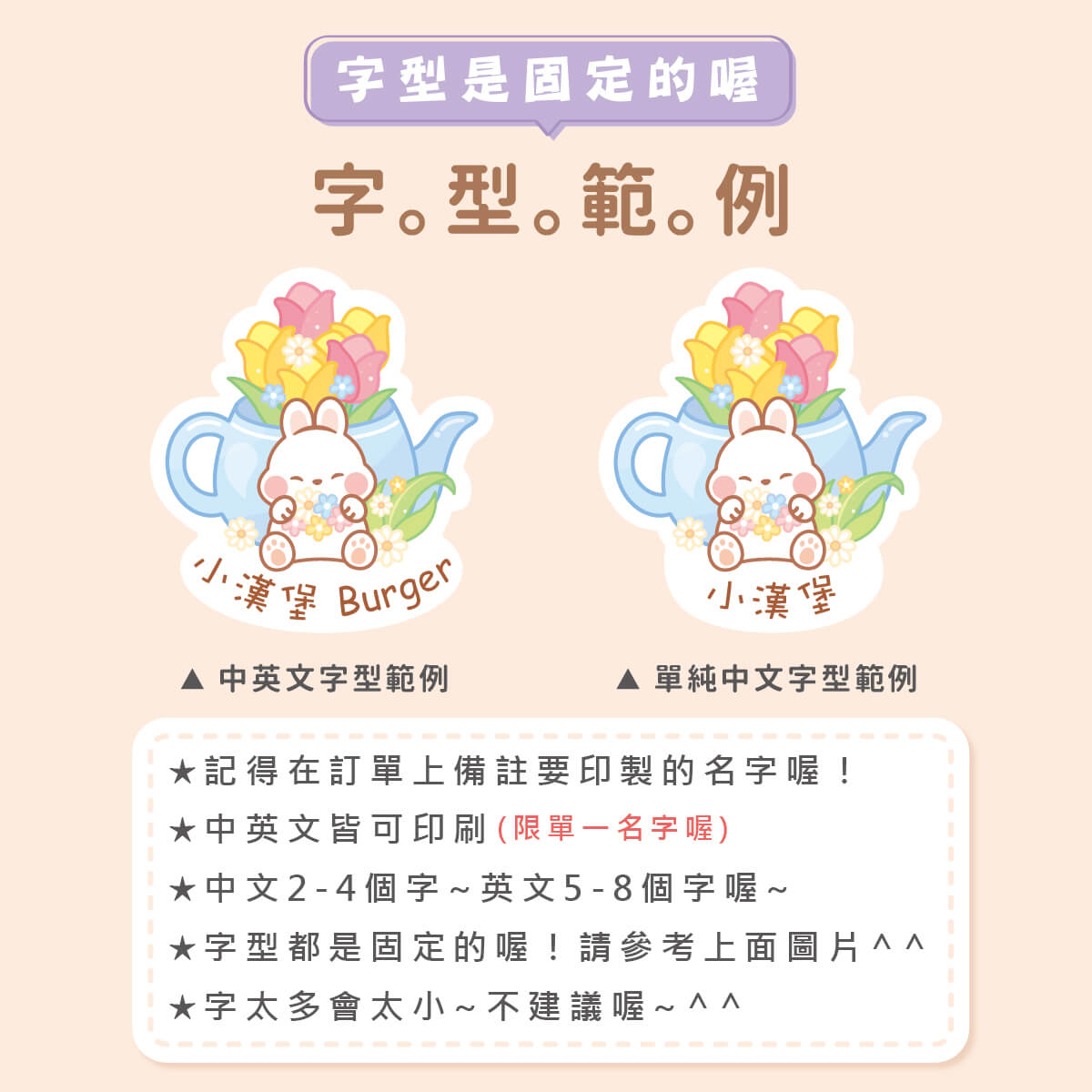 1. 姓名貼會依照訂單填寫內容製作,姓名部份不再另外做確認,請務必確認填寫內容是否正確