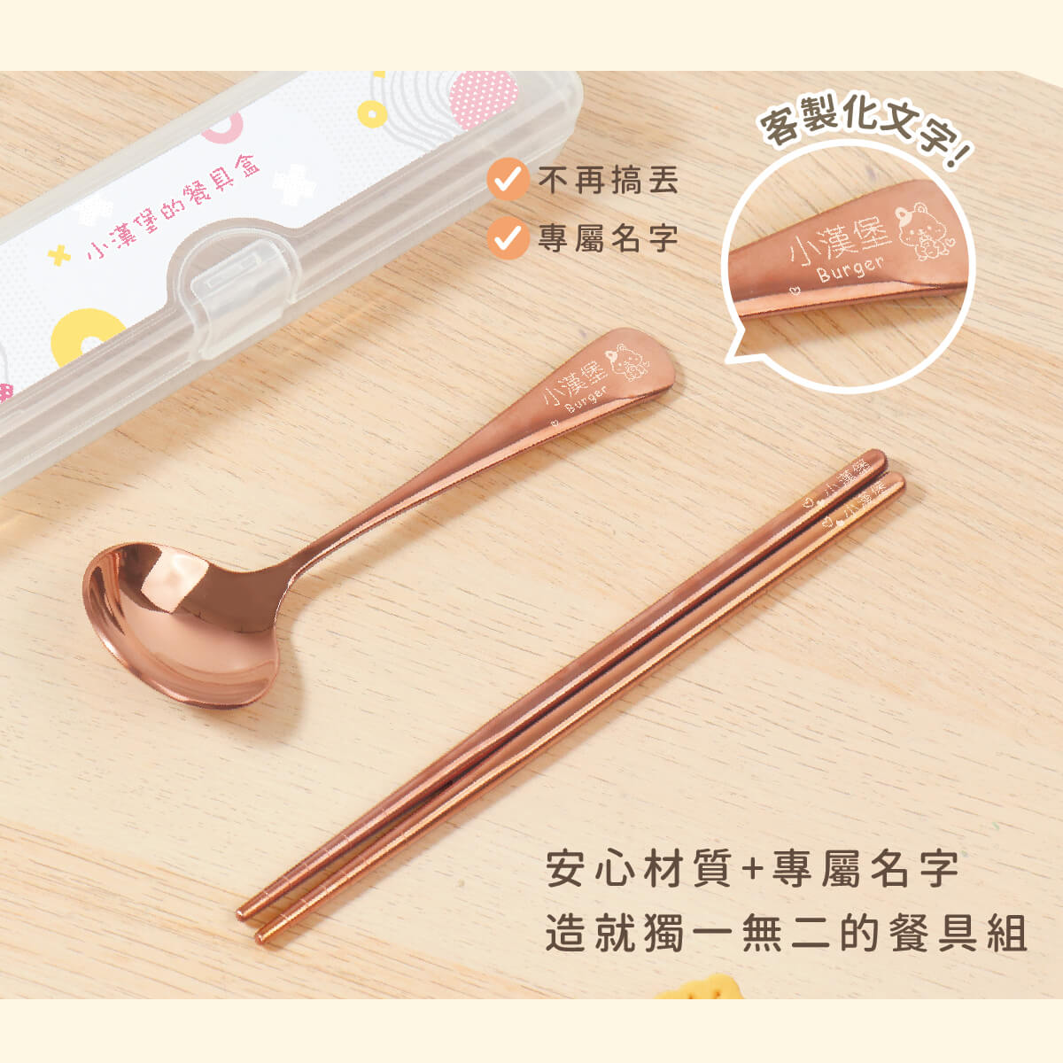 ▶ 餐具組的湯匙可中英文一起,筷子中英文二擇一
