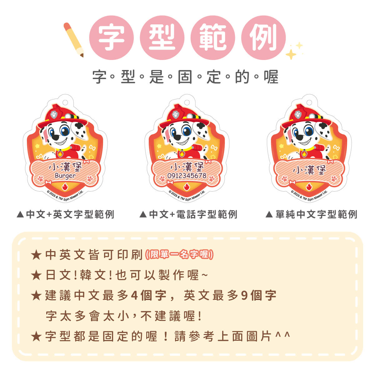 ▶ 字型都是固定的喔,如果想要中規中矩請備註要標楷體喔