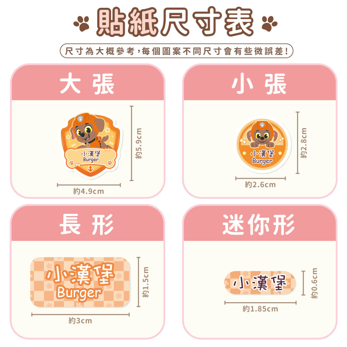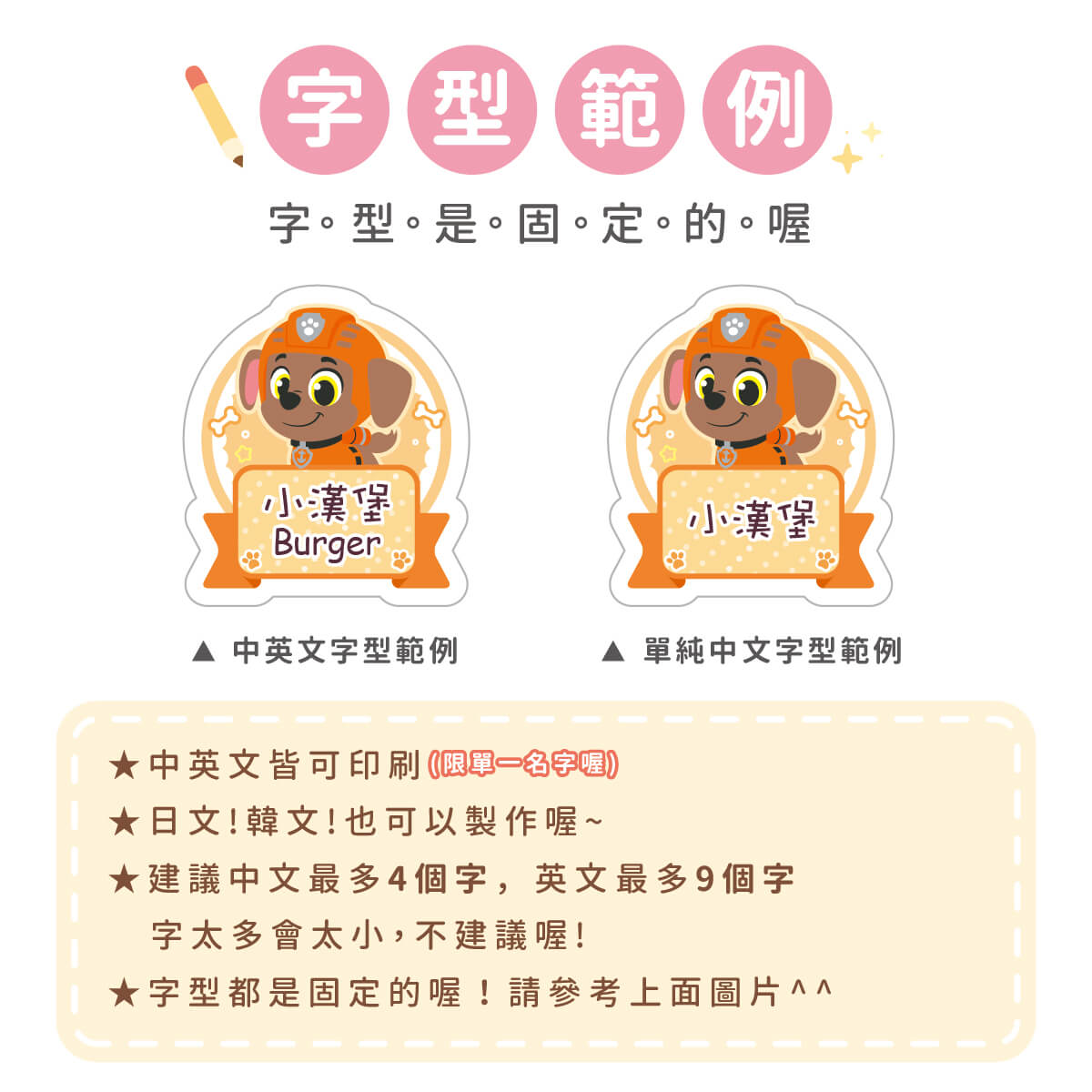 ▶ 此款姓名貼可以中英文一起,也可以單純中文或英文,部分尺寸中英文二擇一,若無特別註明以中文為主