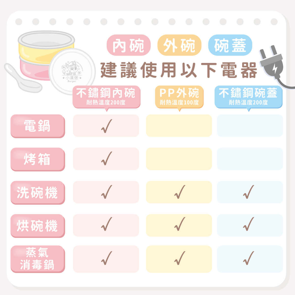 ▶ 三色碗部分,不可使用微波爐或是電鍋加熱喔