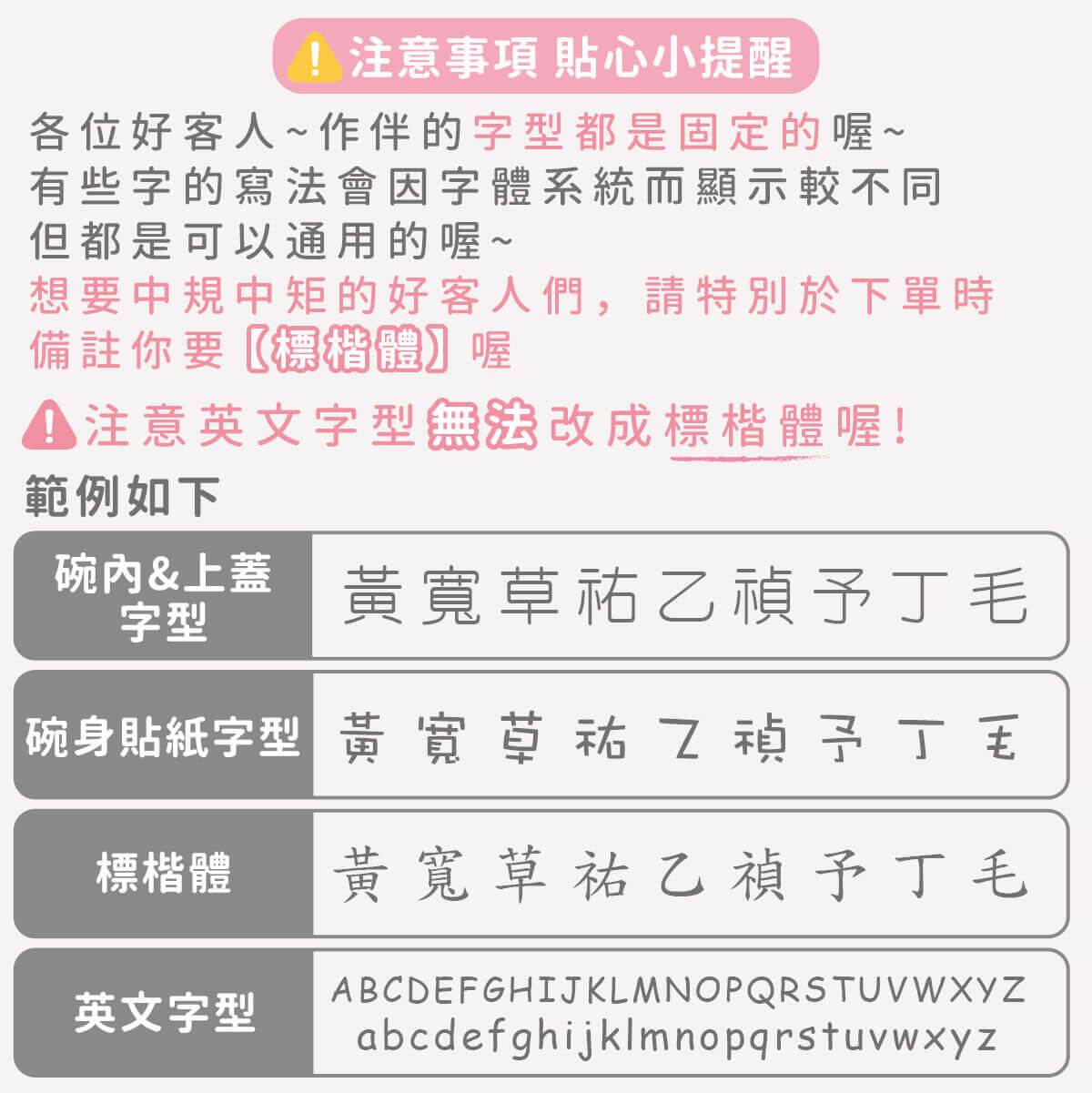 ▶ 字型都是固定的喔,如果想要中規中矩請備註要標楷體喔