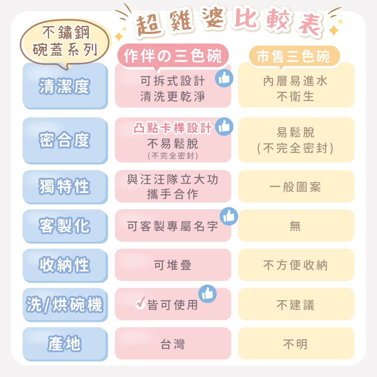 三色碗可拆洗,一開始會比較緊,可以泡熱水,熱漲冷縮後就可以分離囉