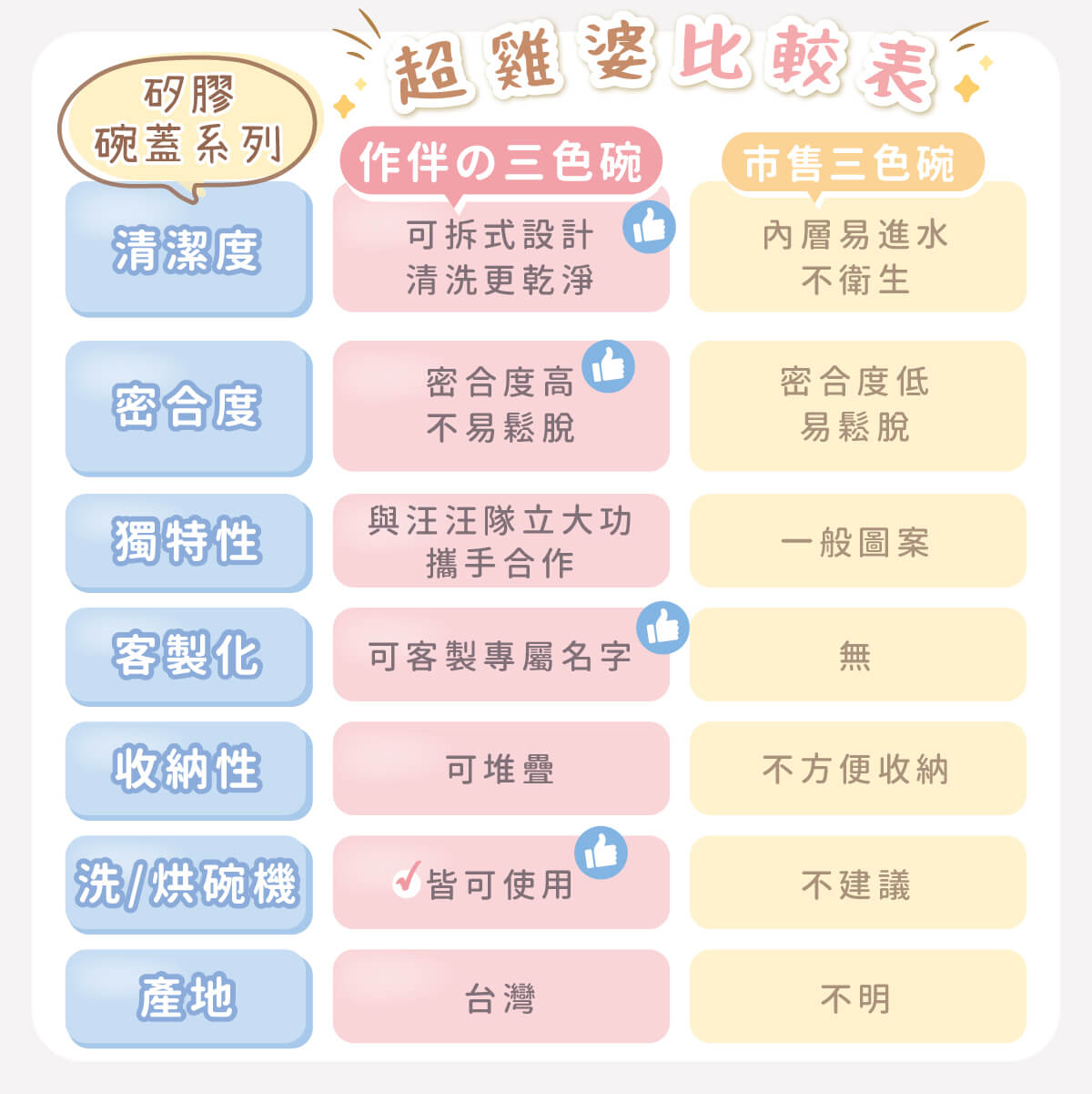 ▶ 三色碗可拆洗,一開始會比較緊,可以泡熱水,熱漲冷縮後就可以分離囉