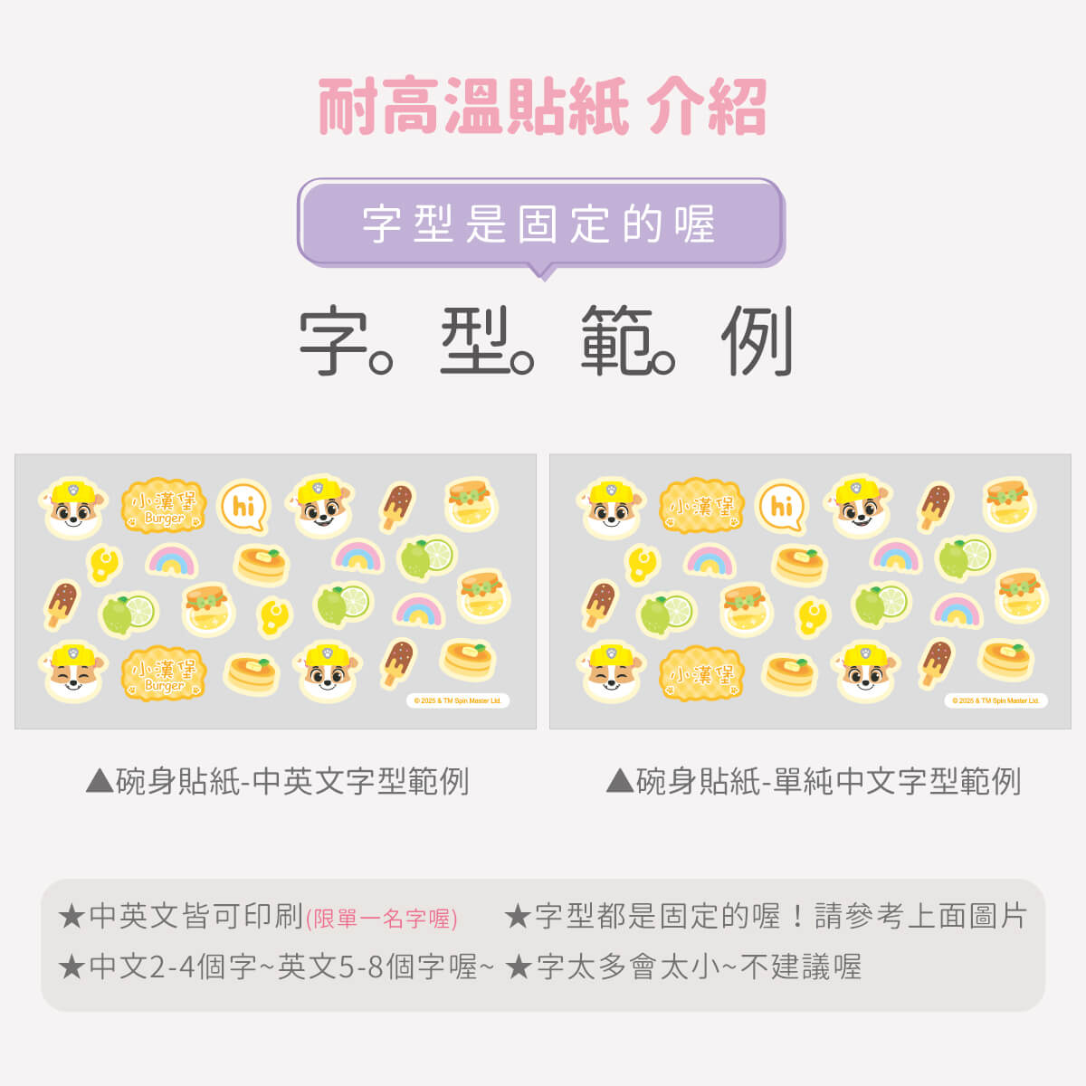 ▶ 三色碗專用耐高溫貼紙(一個碗搭配一張貼紙)