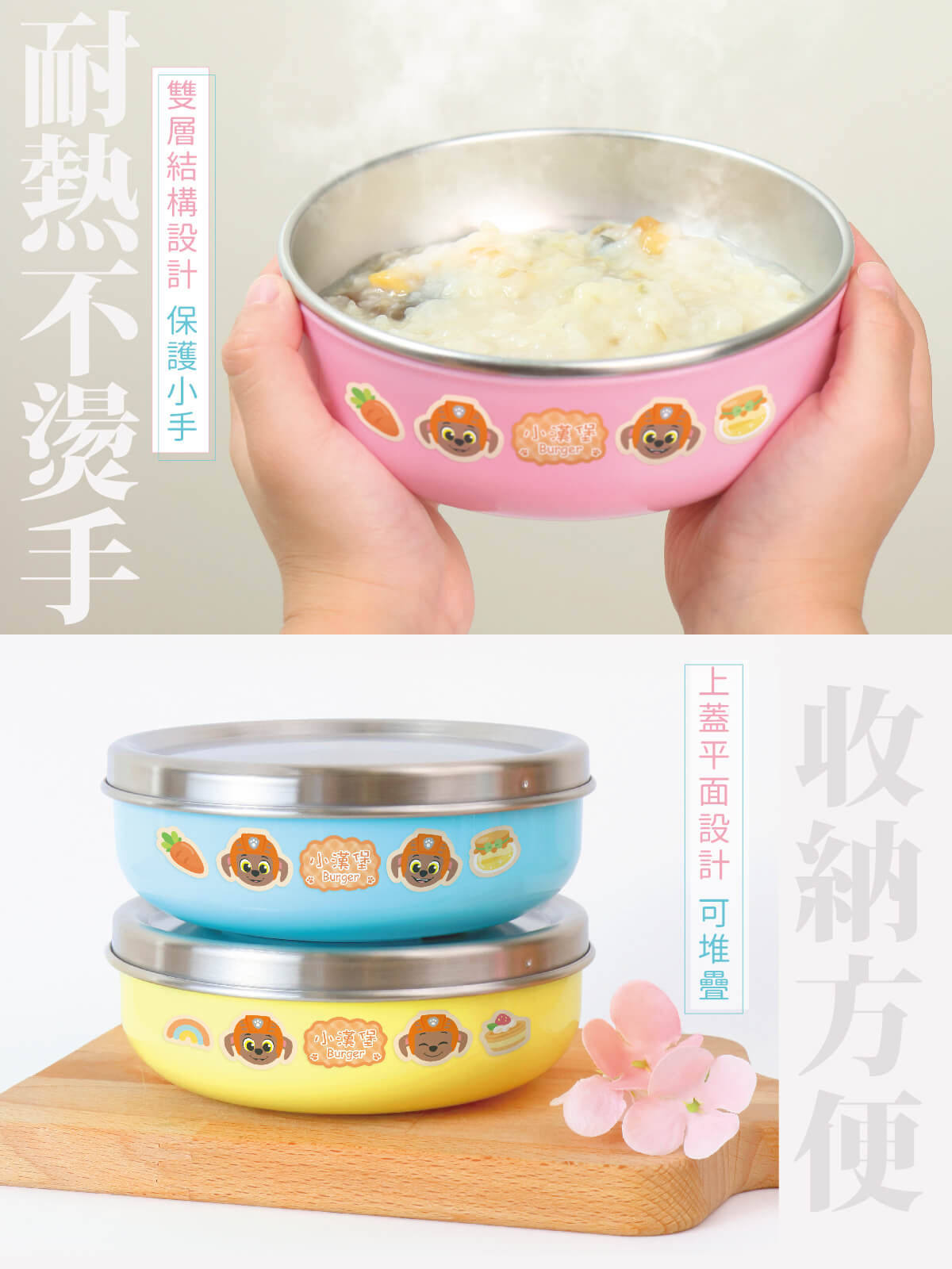 ▶ 三色碗部分,不可使用微波爐或是電鍋加熱喔