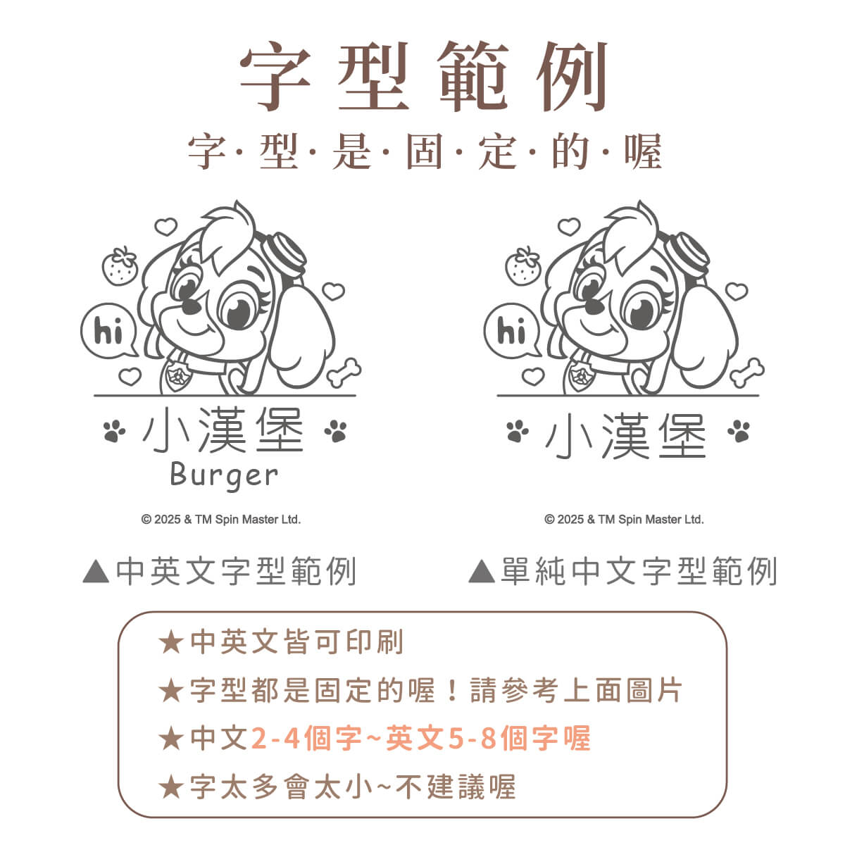 ▶ 此款商品可中英文一起,也可單純中文或英文