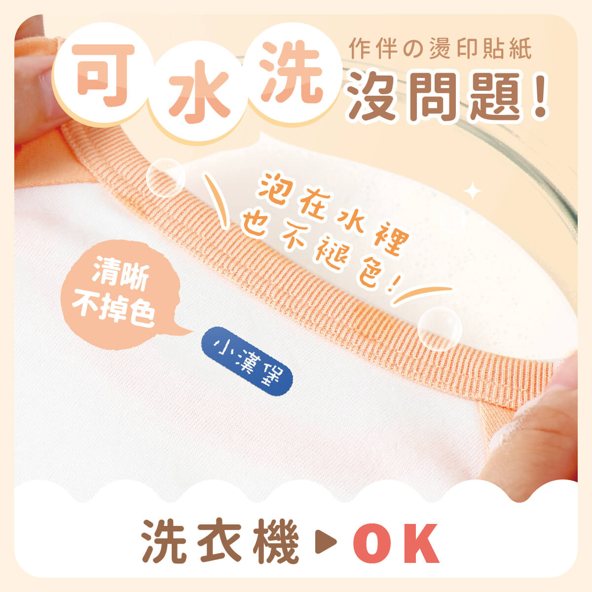 3. 燙印貼"不可"用熨斗直接接觸姓名貼。