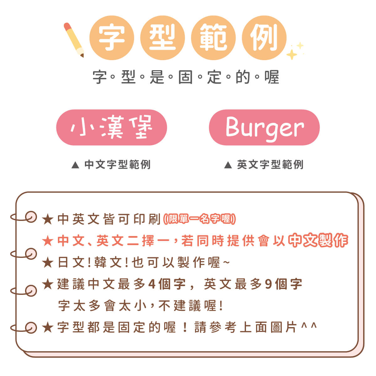 ▶ 此款姓名貼中英文二擇一,若無特別標示會以中文為主喔