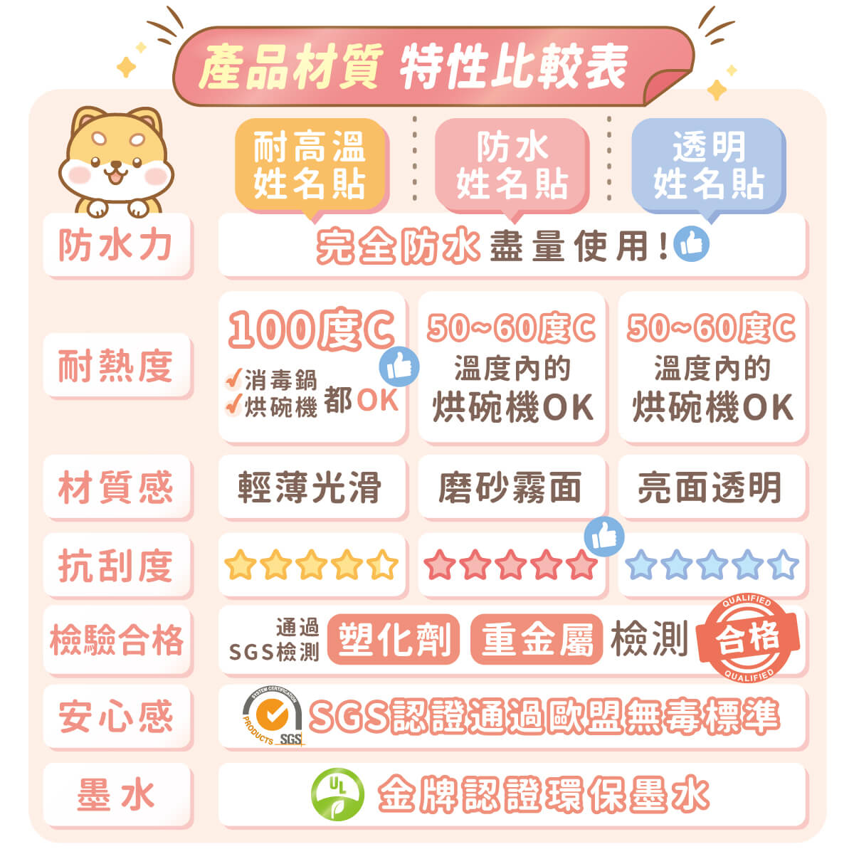 不糊化、不脫落、防水又耐用