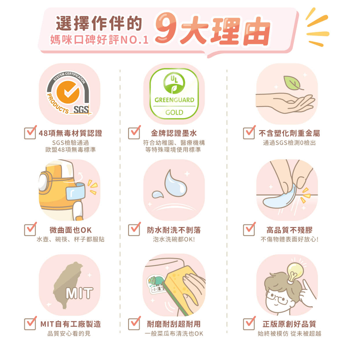 作伴的防水姓名貼,除了親手繪製的可愛圖案,