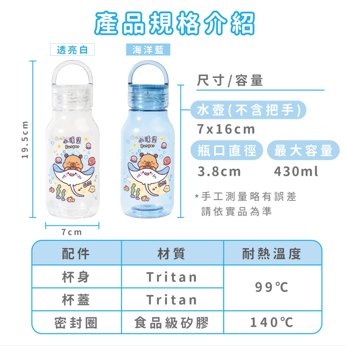 ▶ 材質:瓶身-Tritan、上蓋-Tritan、密封矽膠圈-食品級矽膠