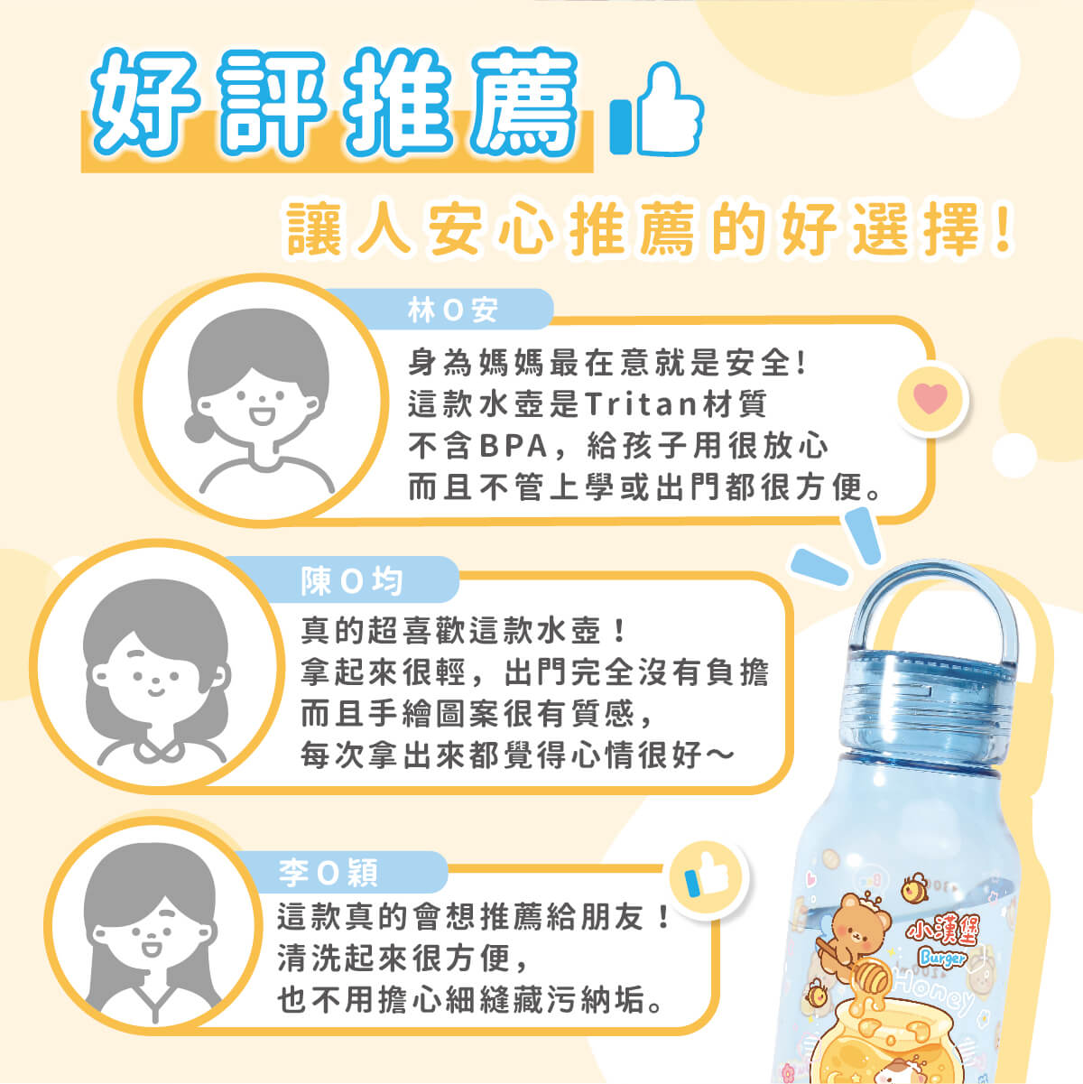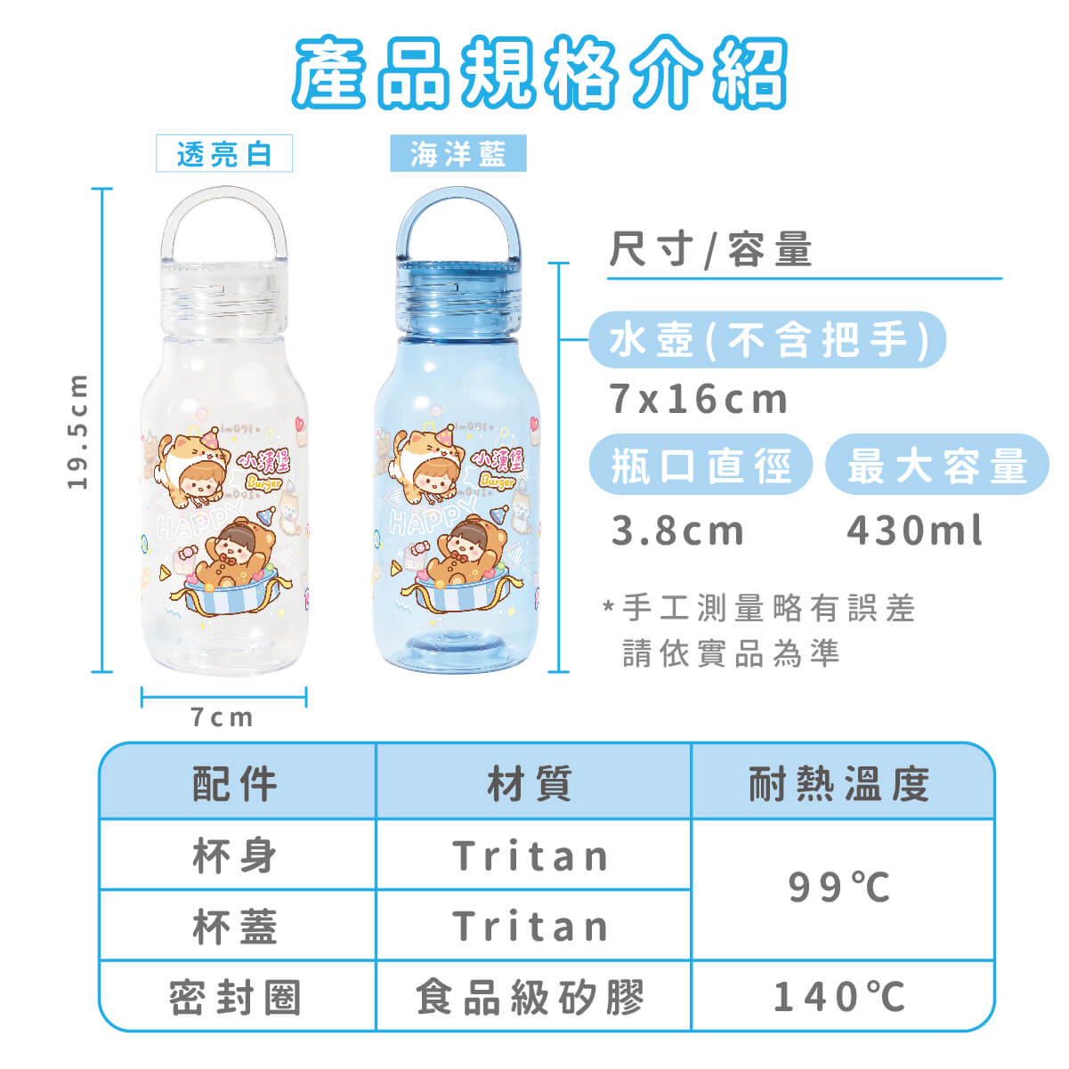 ▶ 材質:瓶身-Tritan、上蓋-Tritan、密封矽膠圈-食品級矽膠