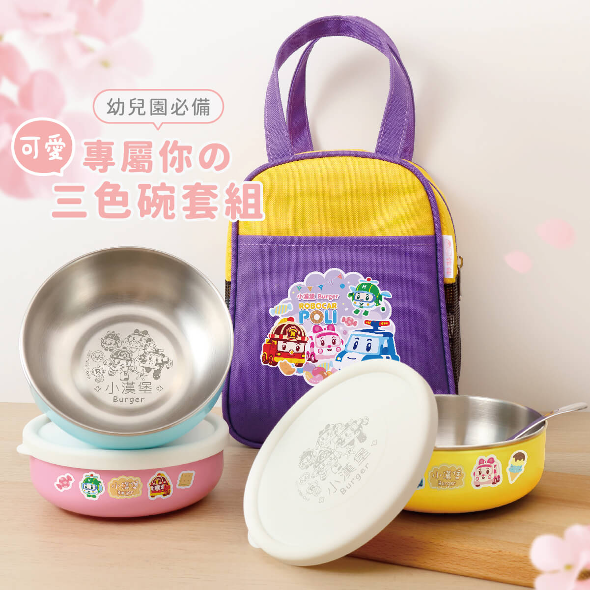 內容物:湯匙三入,碗三種顏色(甜心粉/天空藍/月亮黃)各一,共三入,碗袋一入
