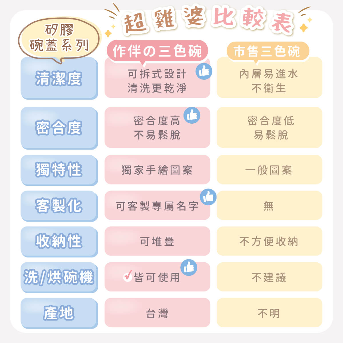 三色碗可拆洗,一開始會比較緊,可以泡熱水,熱漲冷縮後就可以分離囉