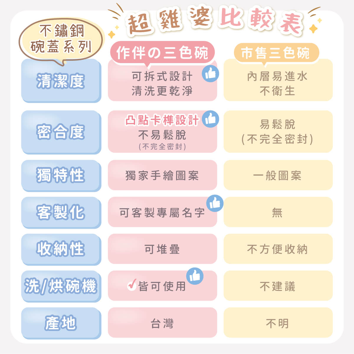 三色碗可拆洗,一開始會比較緊,可以泡熱水,熱漲冷縮後就可以分離囉