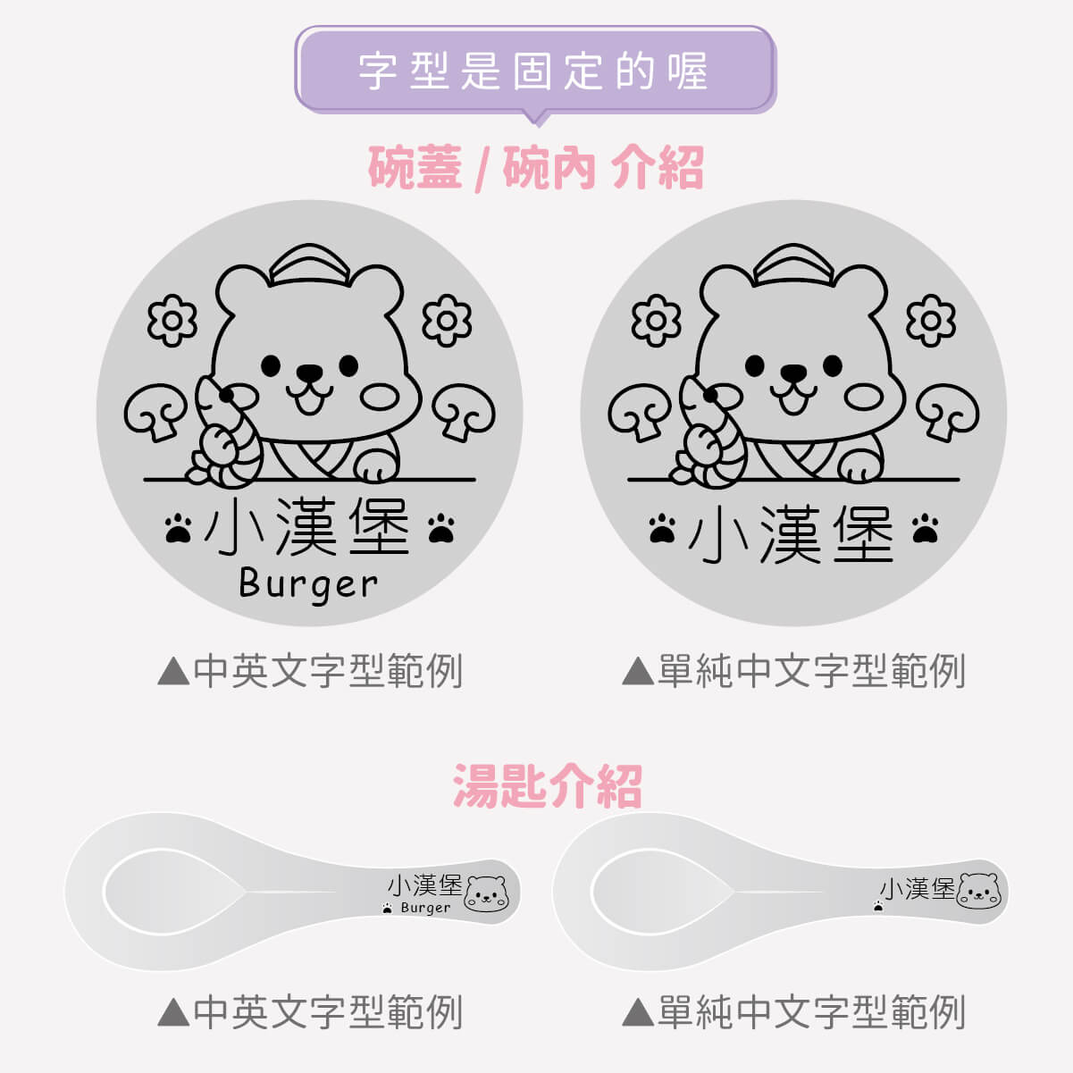 搭配專屬的名字,讓寶貝用餐時增加吃飯的樂趣😀