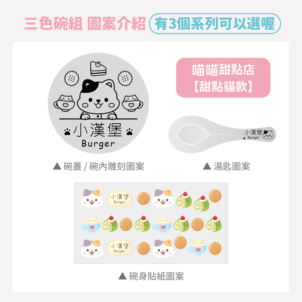 ▶ 三色碗專用耐高溫貼紙 一組三入(一個碗搭配一張貼紙)