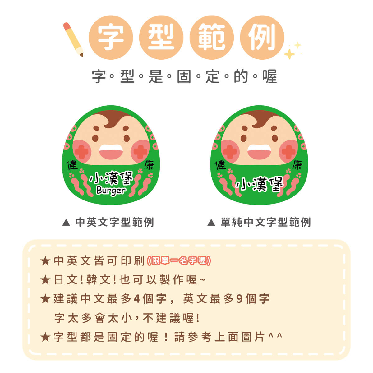 1. 燙印貼會依照訂單填寫內容製作,姓名部份不再另外做確認,請務必確認填寫內容是否正確