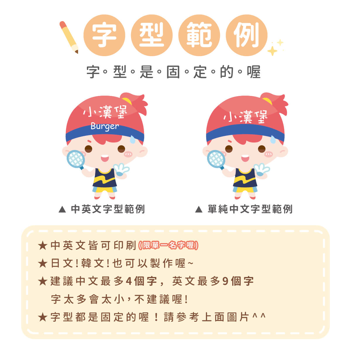 1. 燙印貼會依照訂單填寫內容製作,姓名部份不再另外做確認,請務必確認填寫內容是否正確