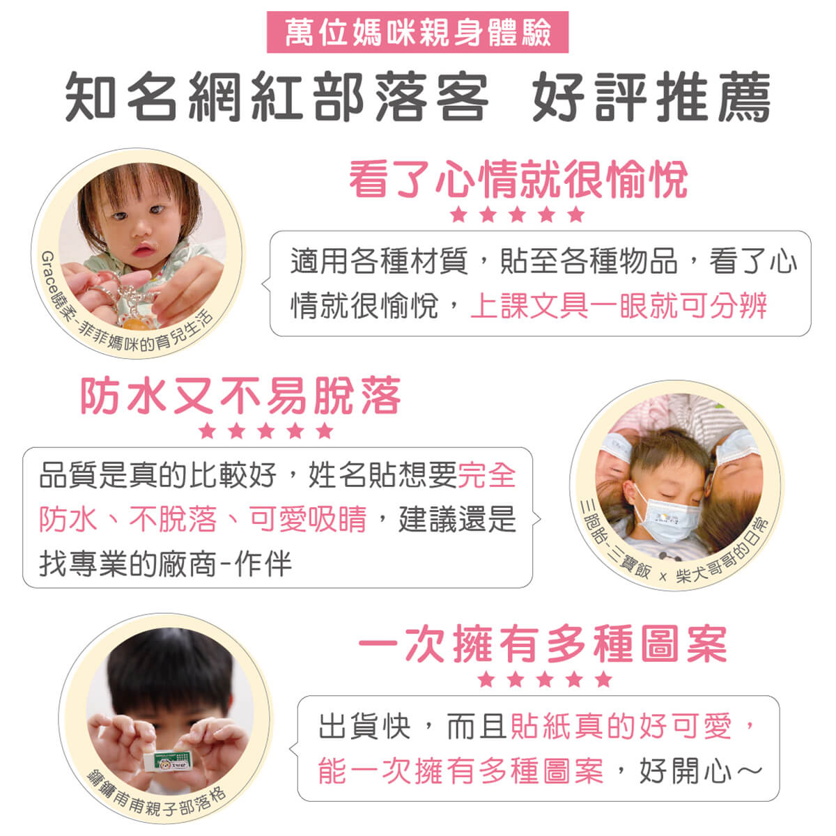 作伴的防水姓名貼,除了親手繪製的可愛圖案,