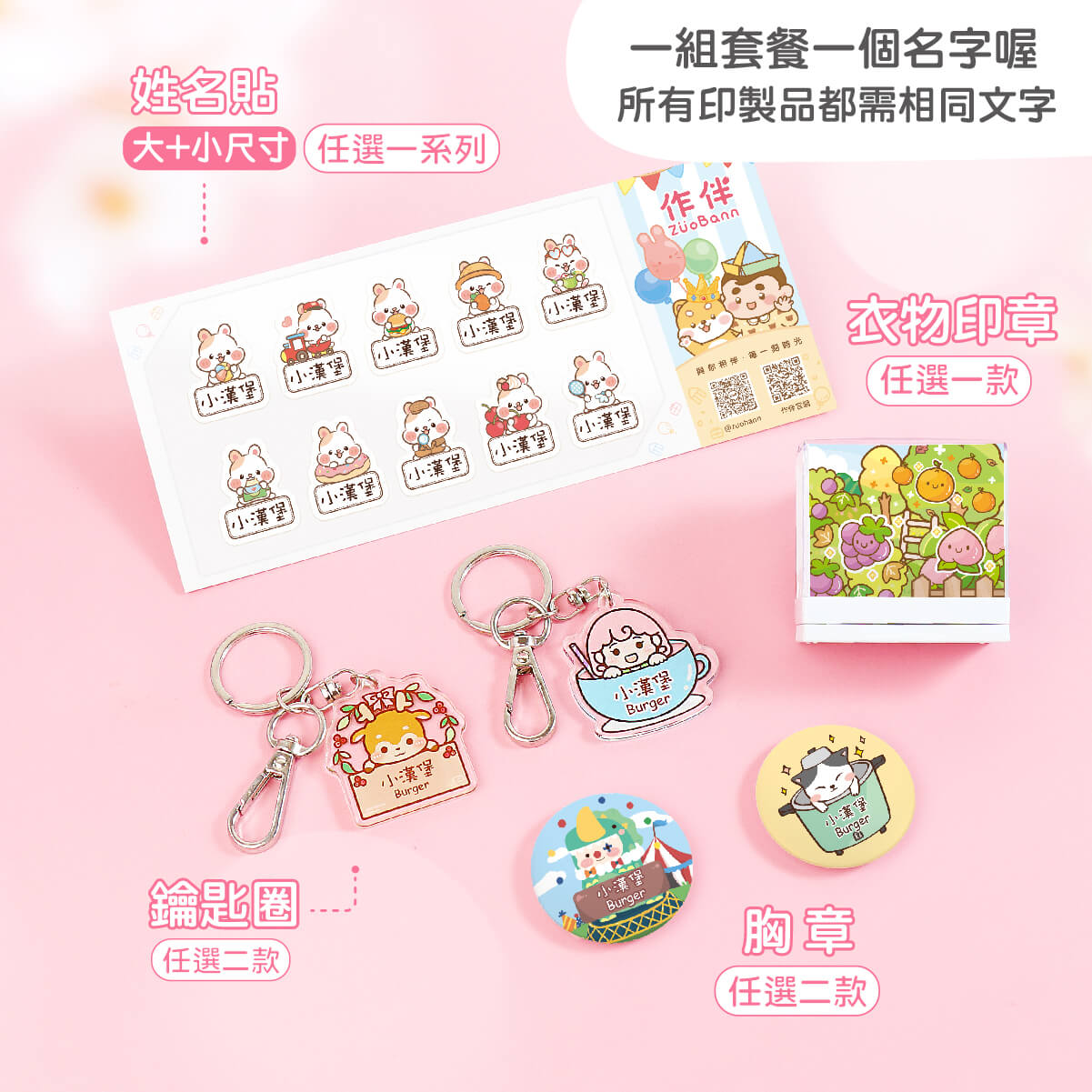 高級防水姓名貼有大有小+衣物印章+鑰匙圈2入+胸章2入