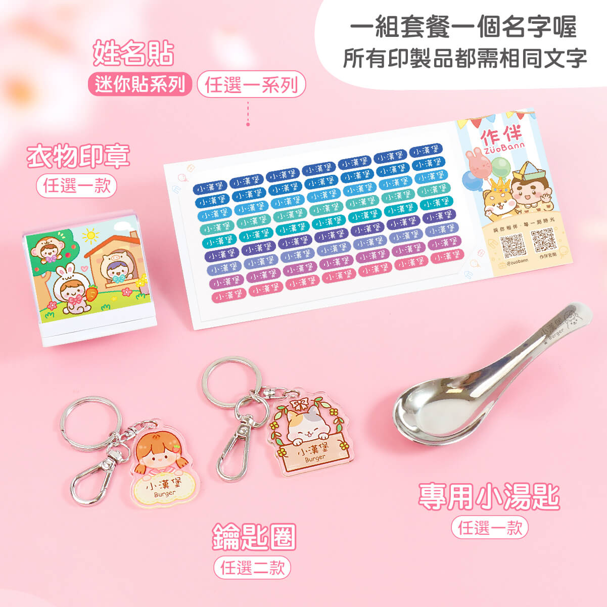 高級防水迷你姓名貼+衣物印章+鑰匙圈2入+專用小湯匙1入