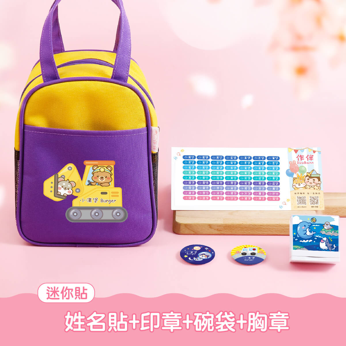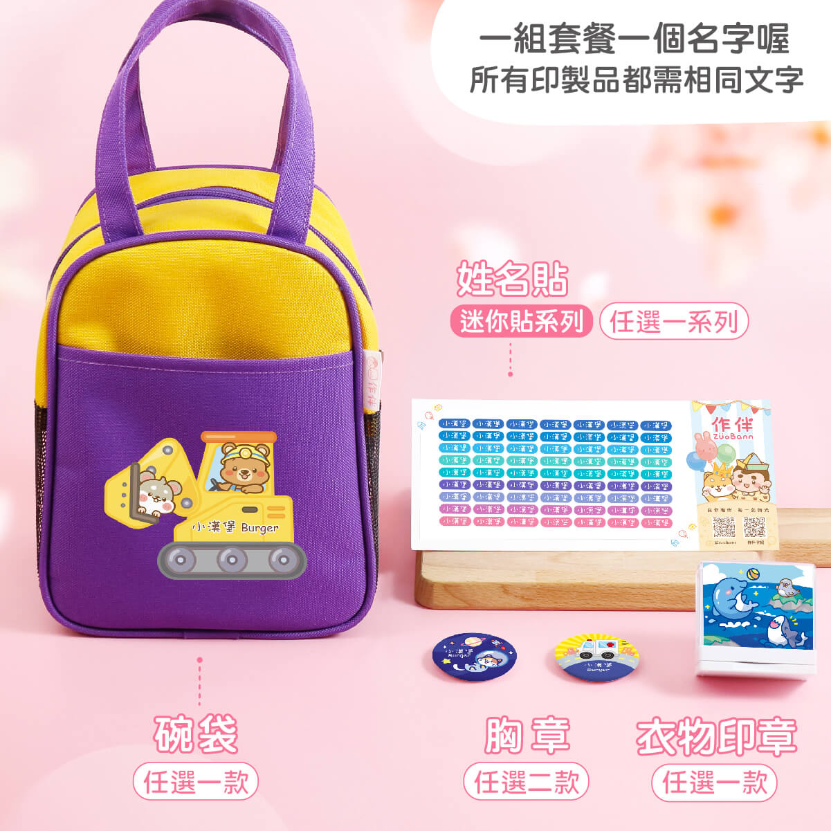 高級防水迷你姓名貼+衣物印章+碗袋+胸章2入