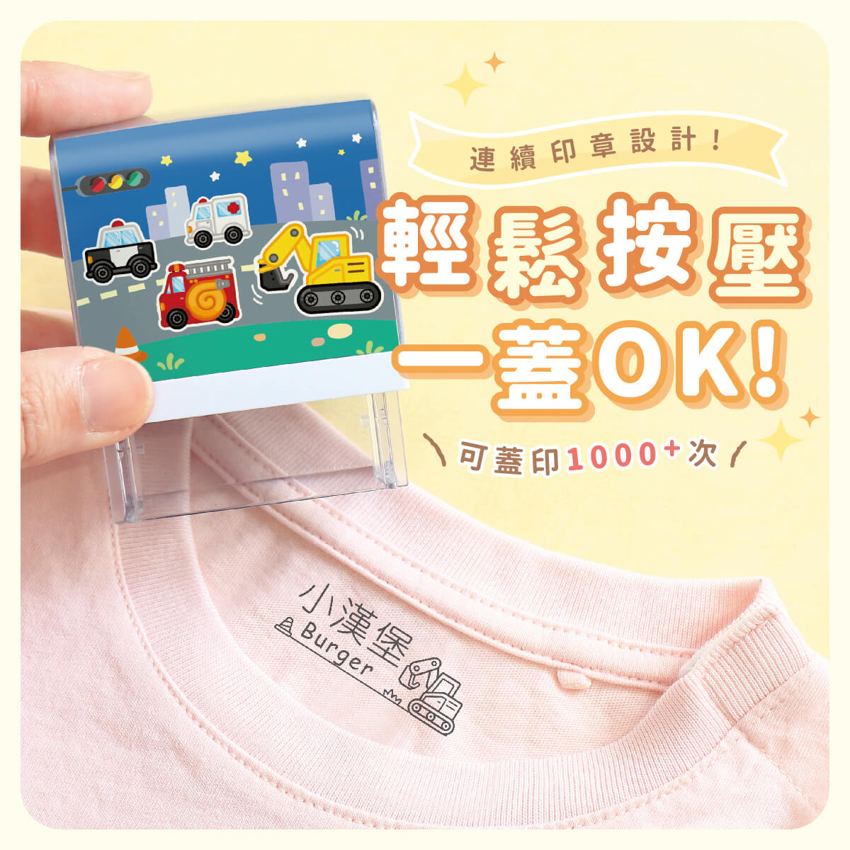 ▶ 印章墨水是黑色的,蓋印在淺色衣物有透印的可能,若是介意可使用印字帶燙印喔
