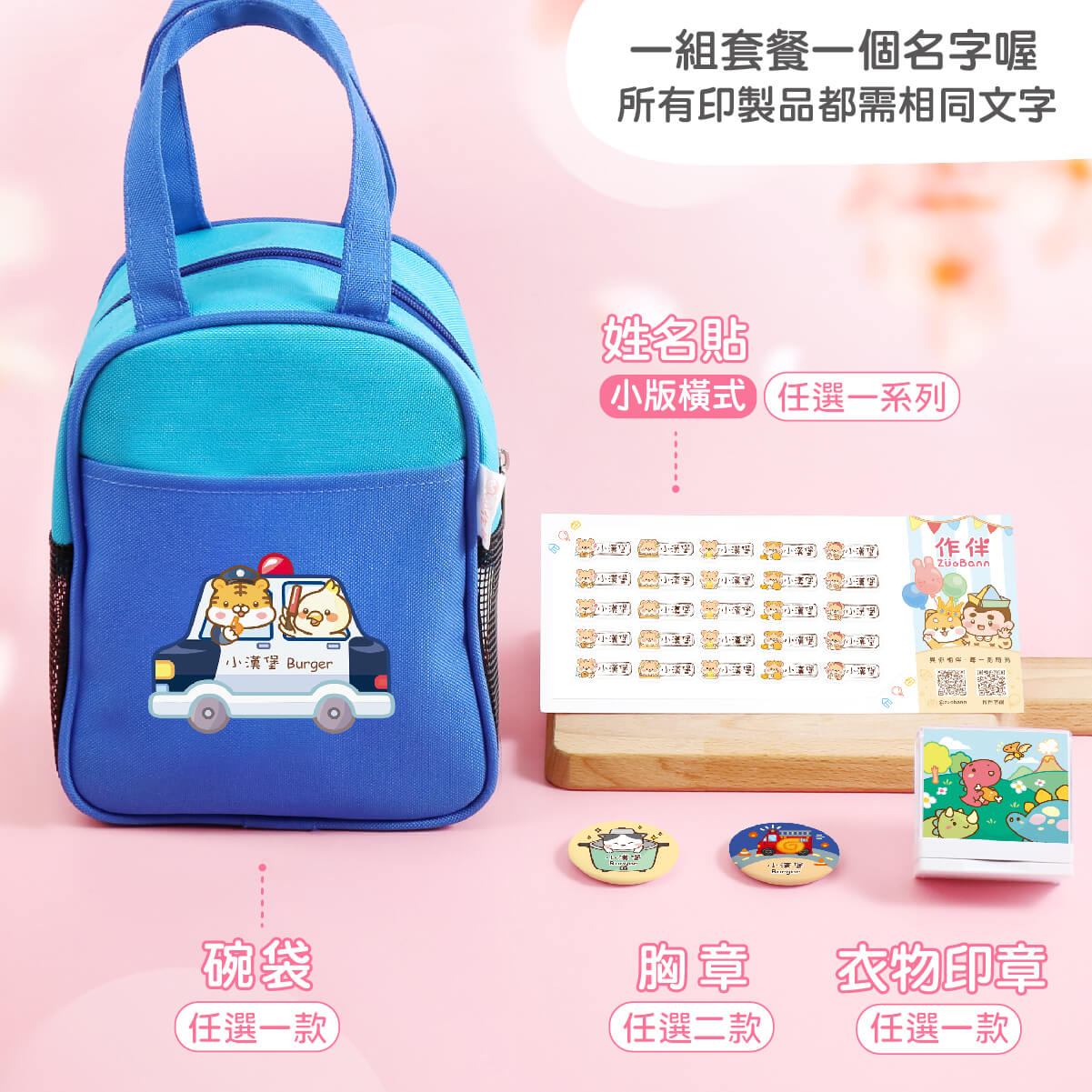 高級防水姓名貼小版橫式+衣物印章+碗袋+胸章2入