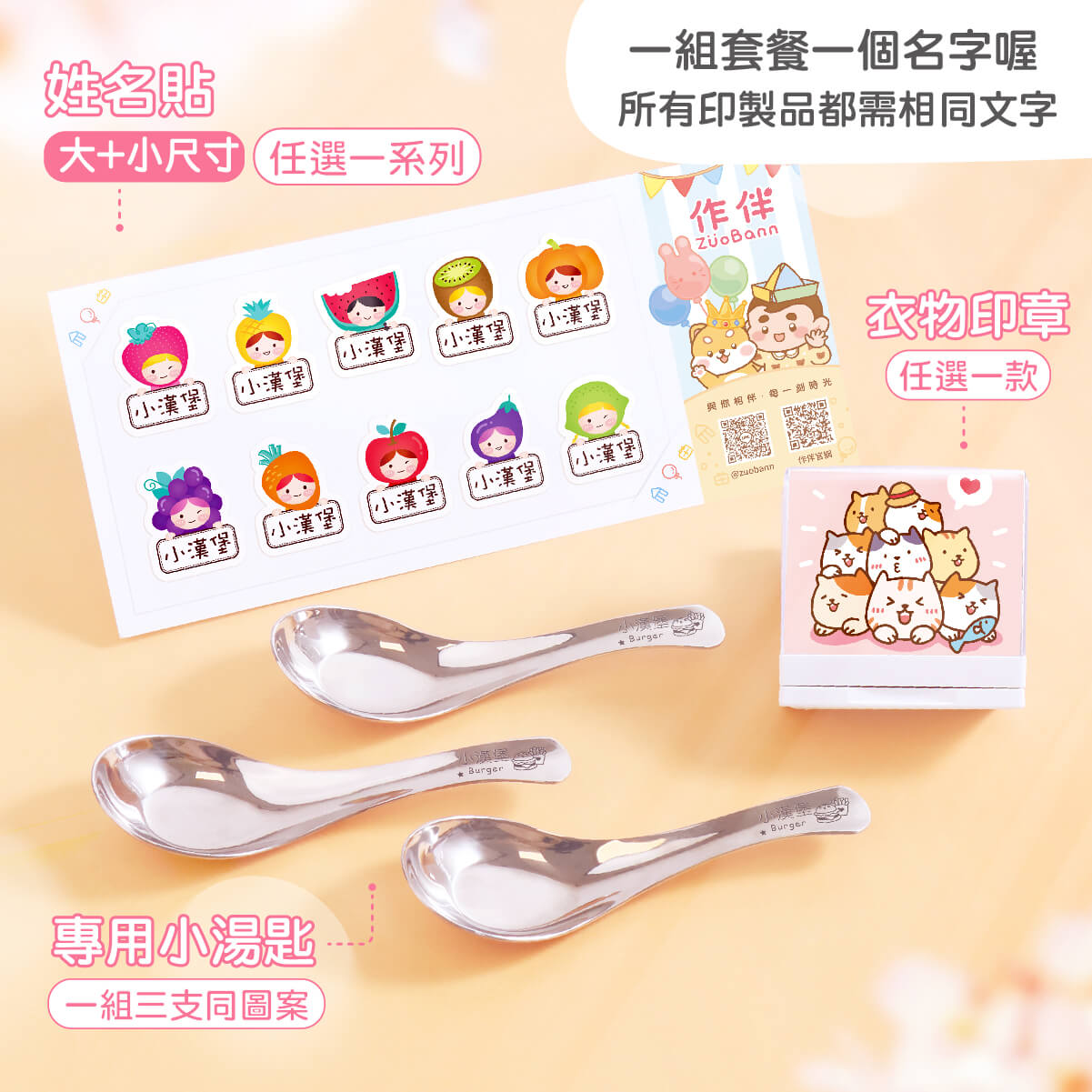 高級防水姓名貼有大有小+衣物印章+三入專用小湯匙