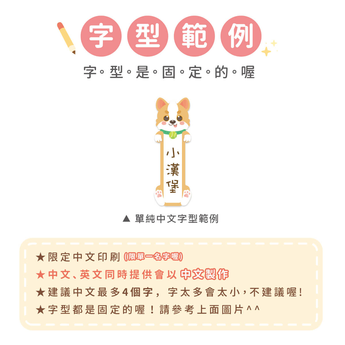 ▶ 此款姓名貼為中文印刷,中文2-4個字喔