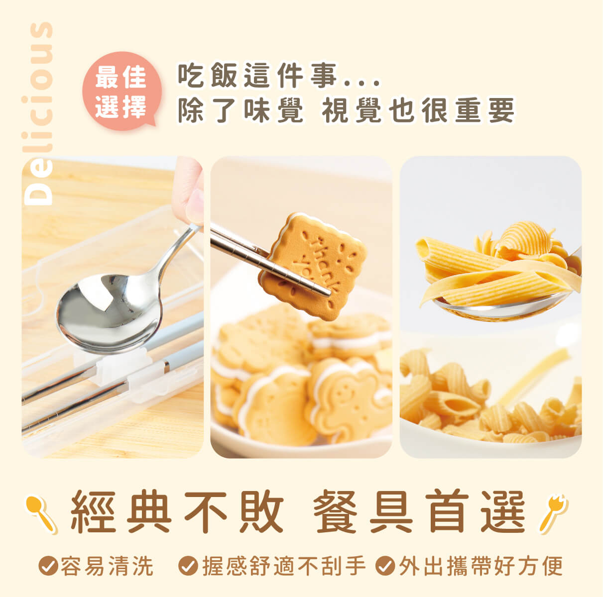▶ 一組餐具組: 湯匙一入,筷子一雙,餐具盒一入(任選1款)