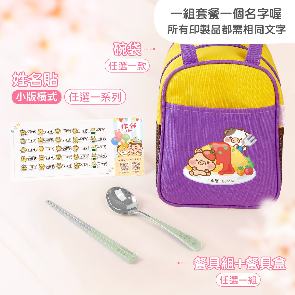 高級防水姓名貼小版橫式+餐具組+碗袋