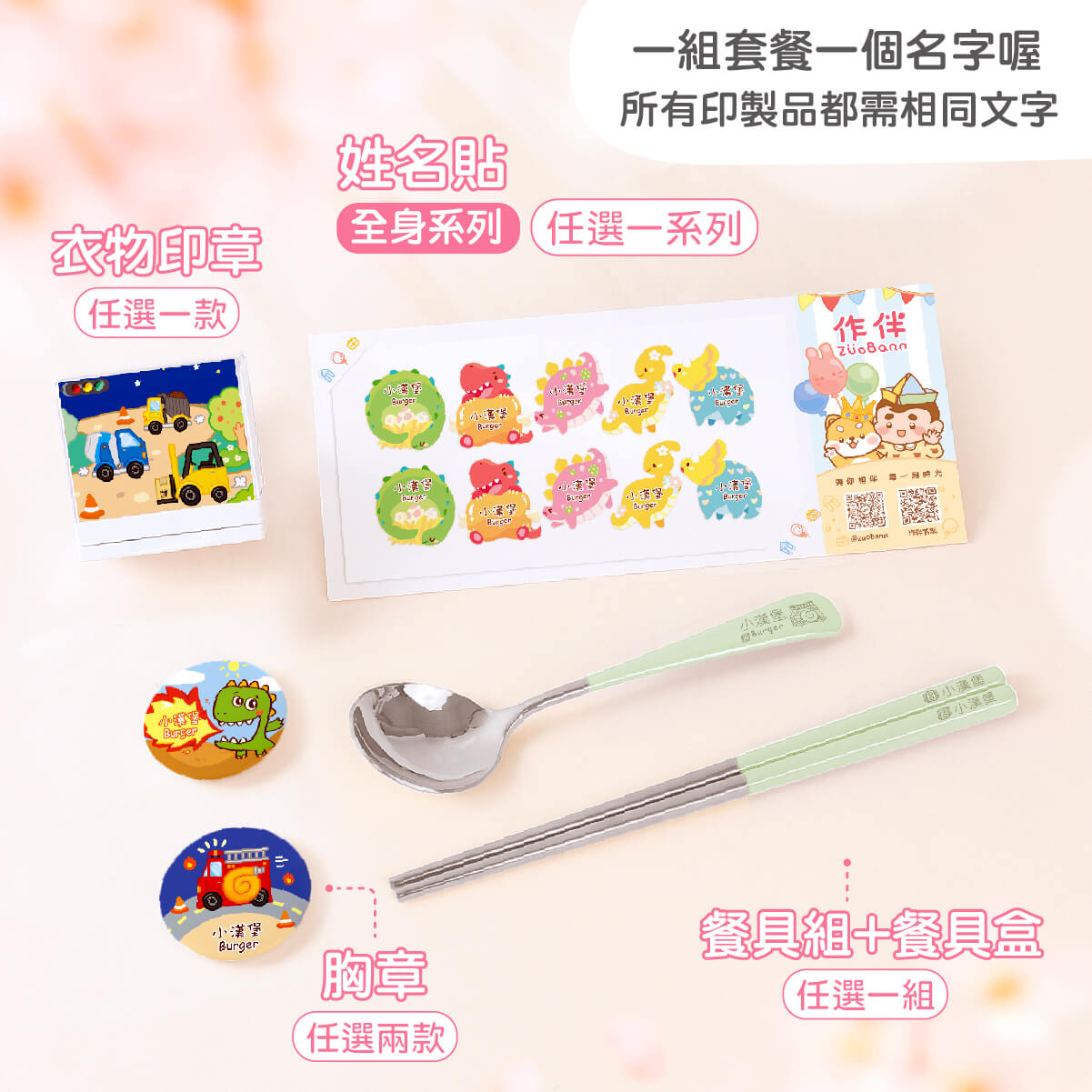 高級防水全身姓名貼+衣物印章+餐具組+胸章2入
