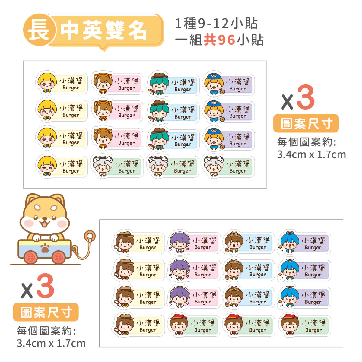 ▶ 中英雙名-方 : 尺寸 約3.4cm x1.7cm ,共96入